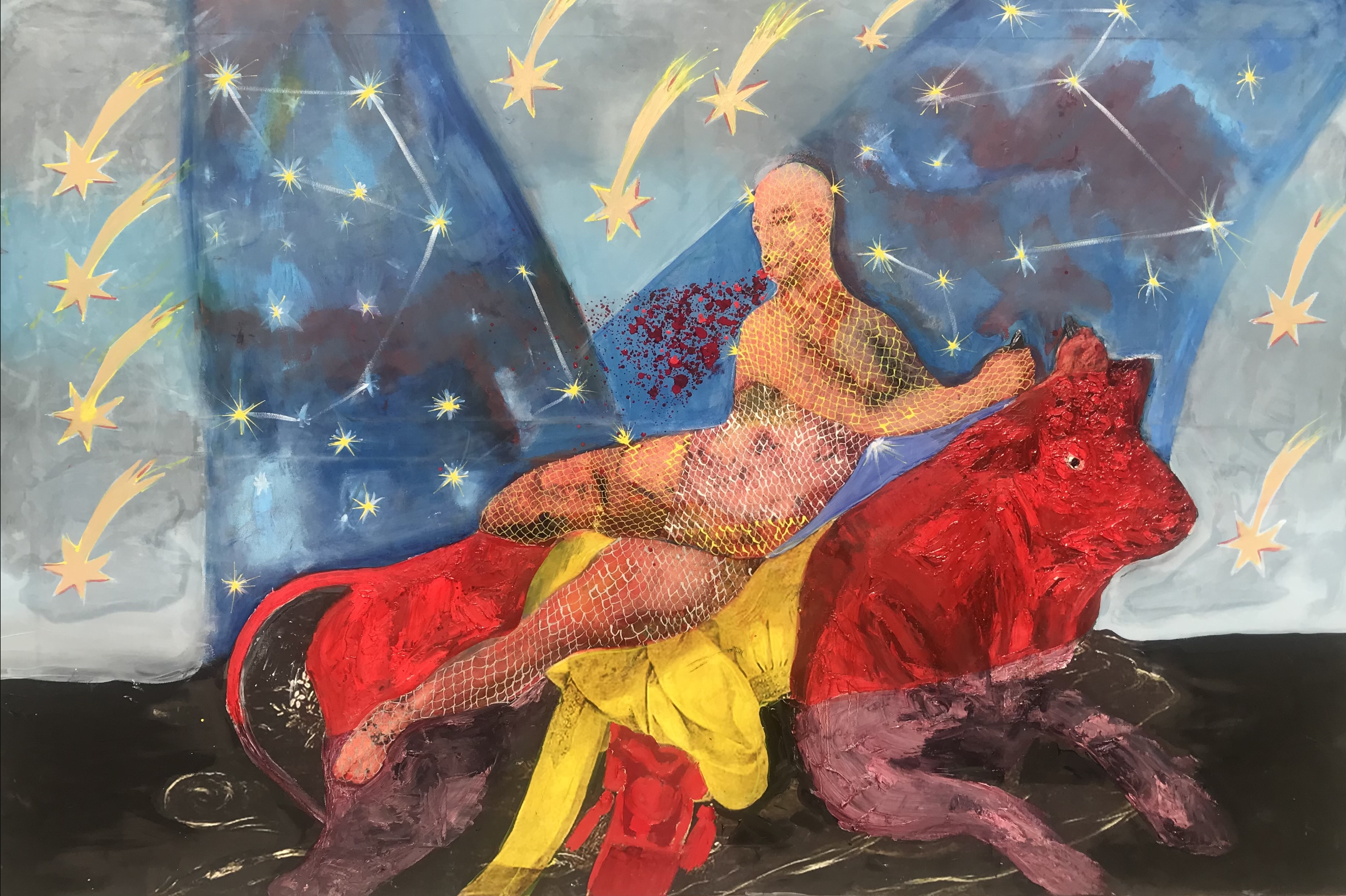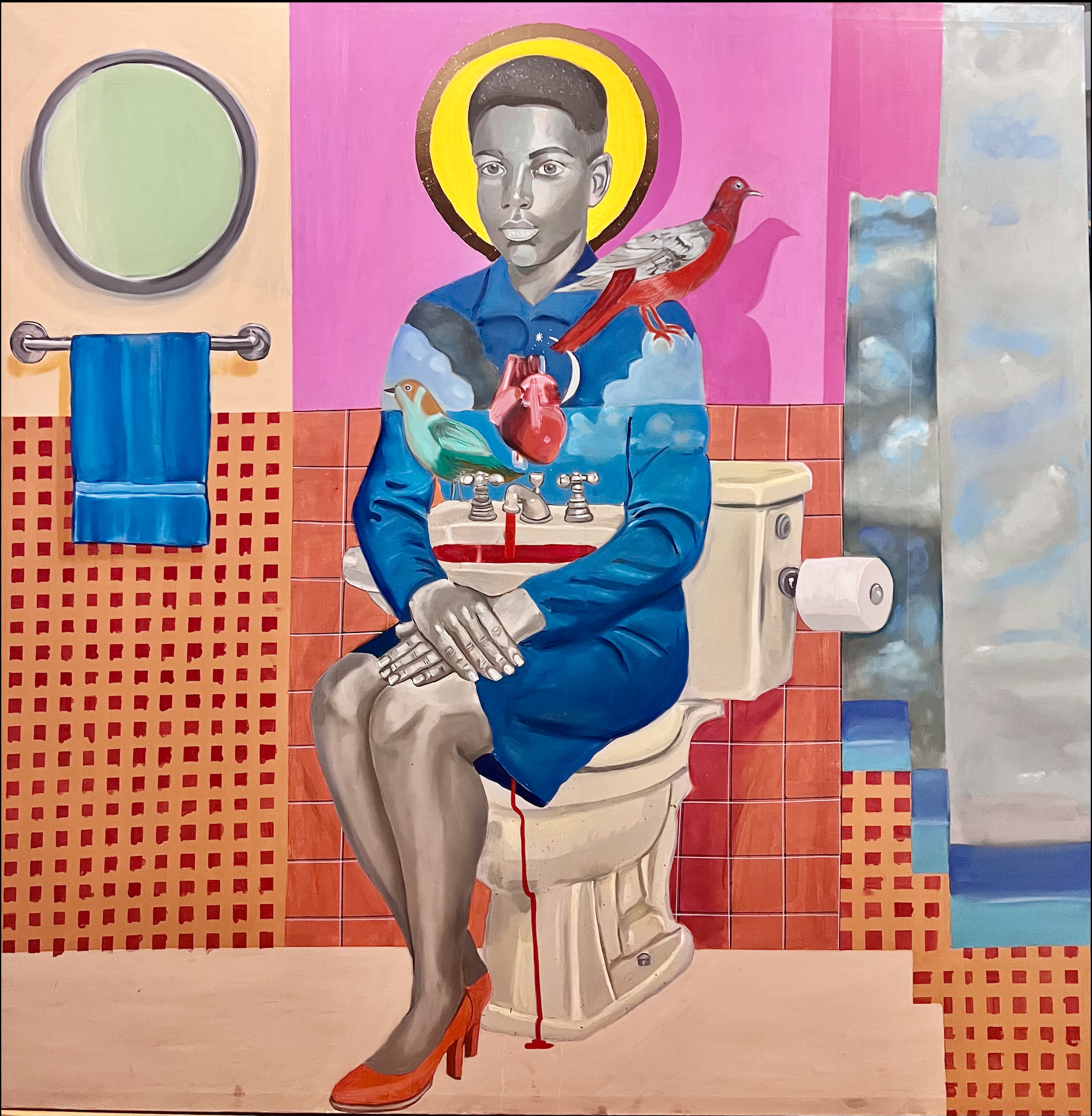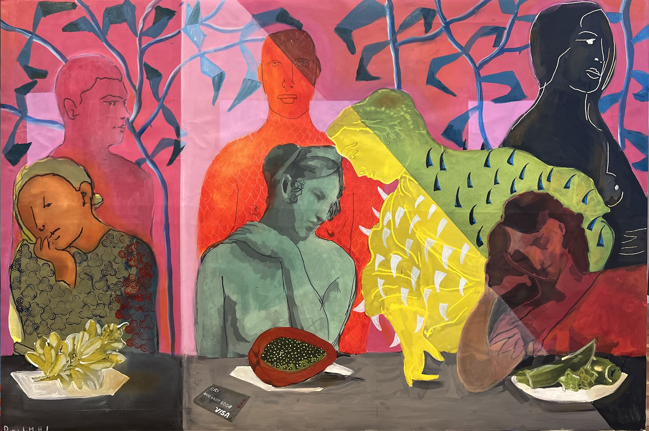 40 x 60 in| Oil and Print on Canvas, Mixed Media